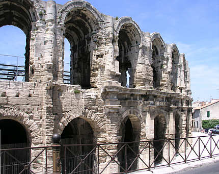 Das Amphitheater wurde auf dem höchsten Punkt der Stadt zwischen der römischen Gründung und der jenseits des Felsenhügels verlaufenden Stadtmauer um 15. v. Chr. errichtet. Es misst 136,15 x 107,62 m, hat auf der Außenfront 60 doppelgeschossige Bogenstellungen, deren bekrönende Attika verloren ist, und bot 21000 Zuschauern Platz.