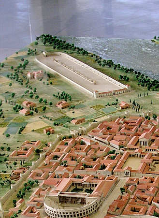 Modell der antiken Stadt mit dem vor den Mauern an der Rhone gelegenen Zirkus