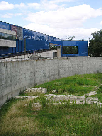 Fundamente der Rundung, im Hintergrund der Bau des Museums