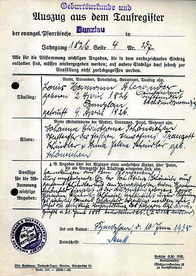 Durch nachfolgende Ehe der Joh. Stina Schöneich auch genannt Schindler mit dem Privatschreiber Anton Hermann Schönfeld hieselbst ist der außerehelich geborene Louis Hermann Alexander Schöneich legitimiert und zur Führung des väterlichen Namens Schönfeld berechtigt worden, wie solches die gerichtliche Verhandlung des hiesigen Kgl. Kreis-Gerichts vom 21. Juni 1881 beurkundet. ( II V 128 ...) |